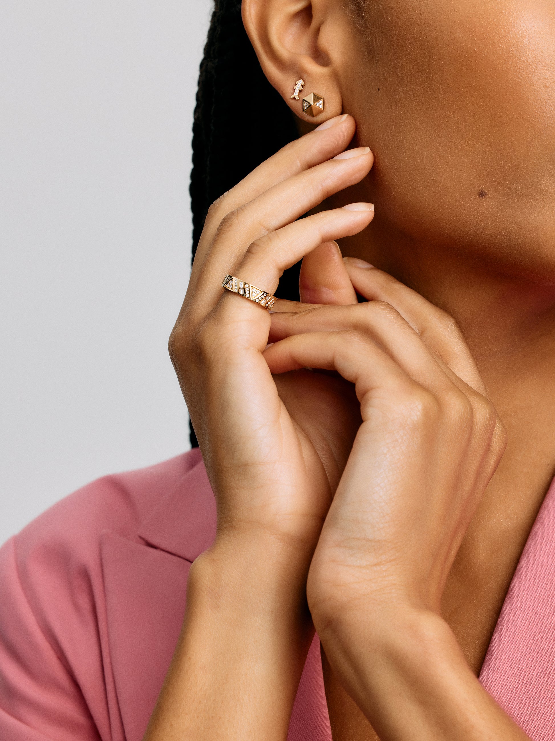 Unsere zarte Erinnerung daran, dass Vorwärtsbewegung immer eine gute Idee ist: Die Arrow-Nieten sind eine elegante Alltagsoption.