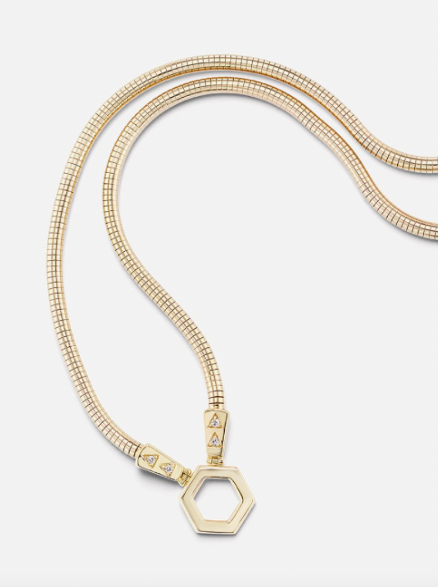 Fasziniert von den satten Farben und der verführerischen Kraft großformatiger Edelsteine reiste Designerin Lauren Harwell Godfrey für ihre neueste Kollektion, Cleopatra's Vault, in die Zeit des alten Ägypten. Godfrey verzichtete auf eine wörtliche Interpretation der von Schlangen inspirierten Manschetten und verwendete stattdessen ihre charakteristische Dreieckseinlage – eine Anspielung auf die Pyramiden – sowie spezifische Statement-Edelsteine und -Silhouetten, die einer modernen Königin angemessen sind.