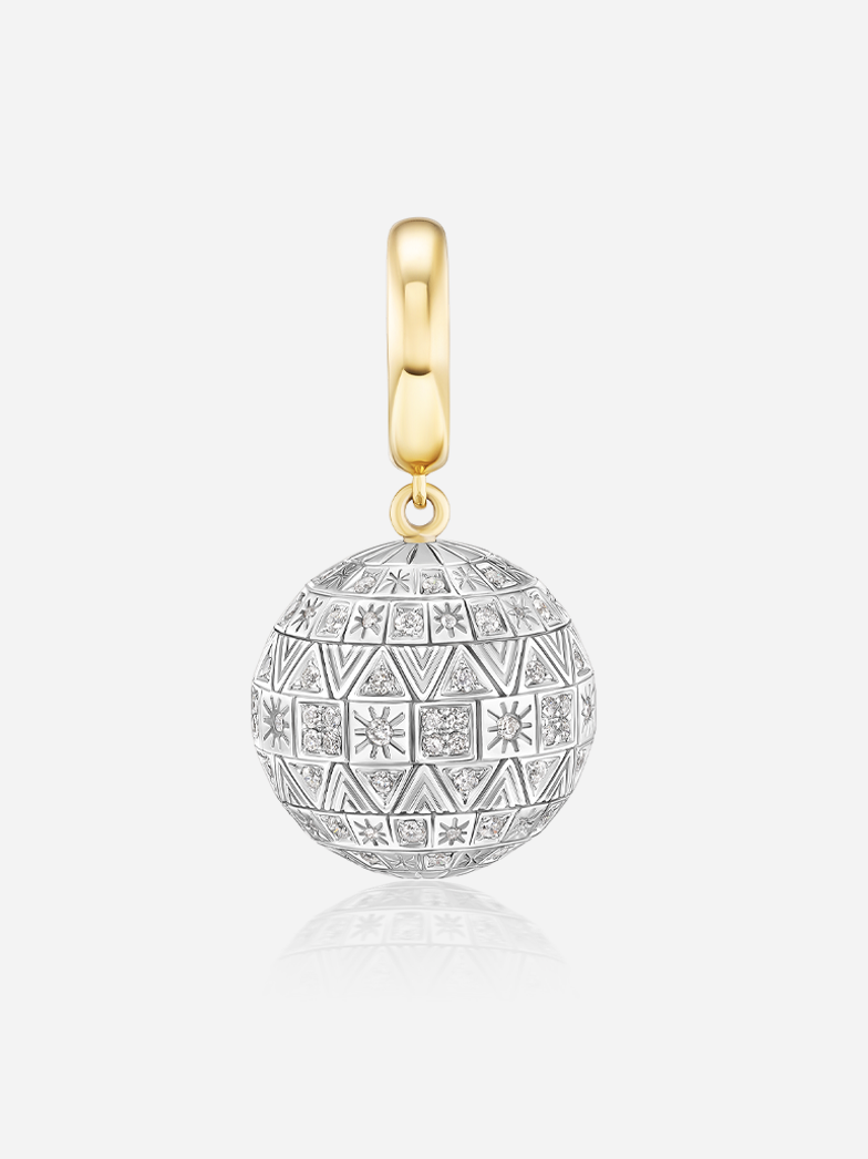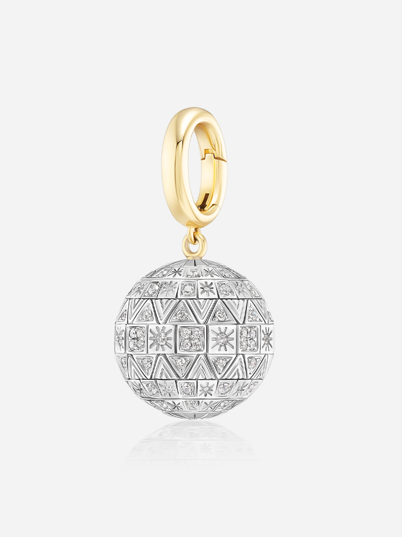 Made to order in 8-10 weeks. 18k yellow and white gold disco ball pendant charm.
