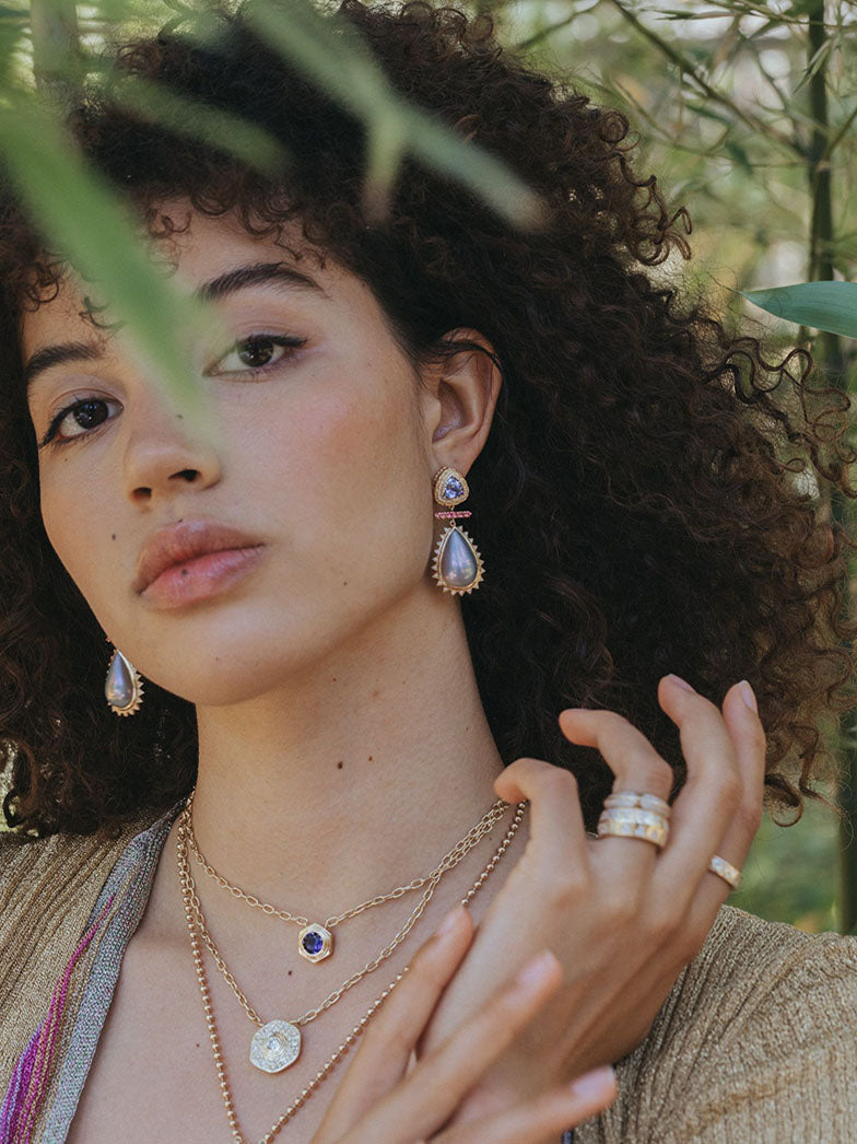 Als moderne Kombination aus hart und weich nimmt Hexed die HG-Klassikerform des Sechsecks auf und kombiniert sie mit konzentrischen Kreisen für eine dreidimensionale Fassung, die stark von kräftigem Gelbgold geprägt ist. Erhältlich als Halskette mit Anhänger, Ohrstecker oder Ring, kombinierbar!