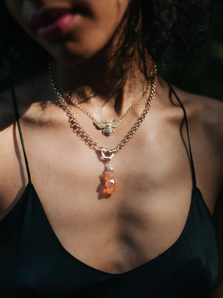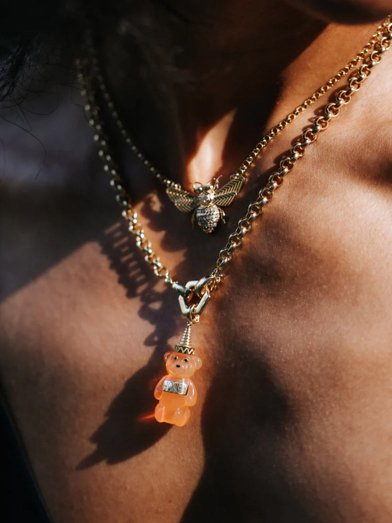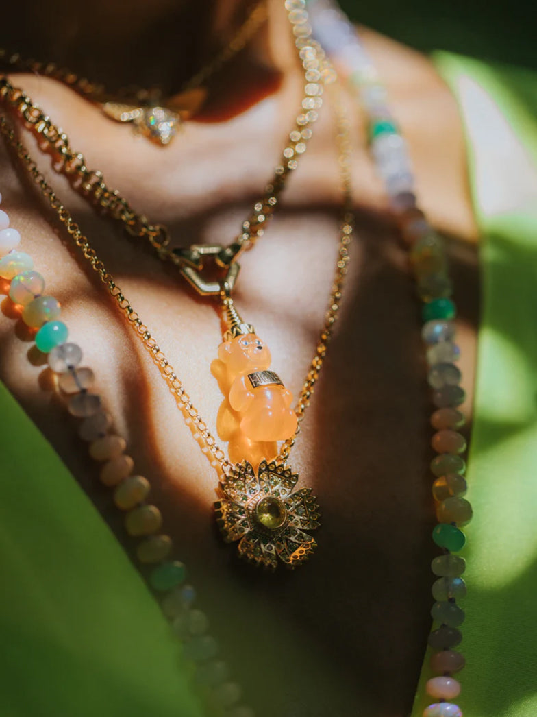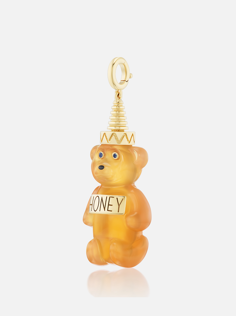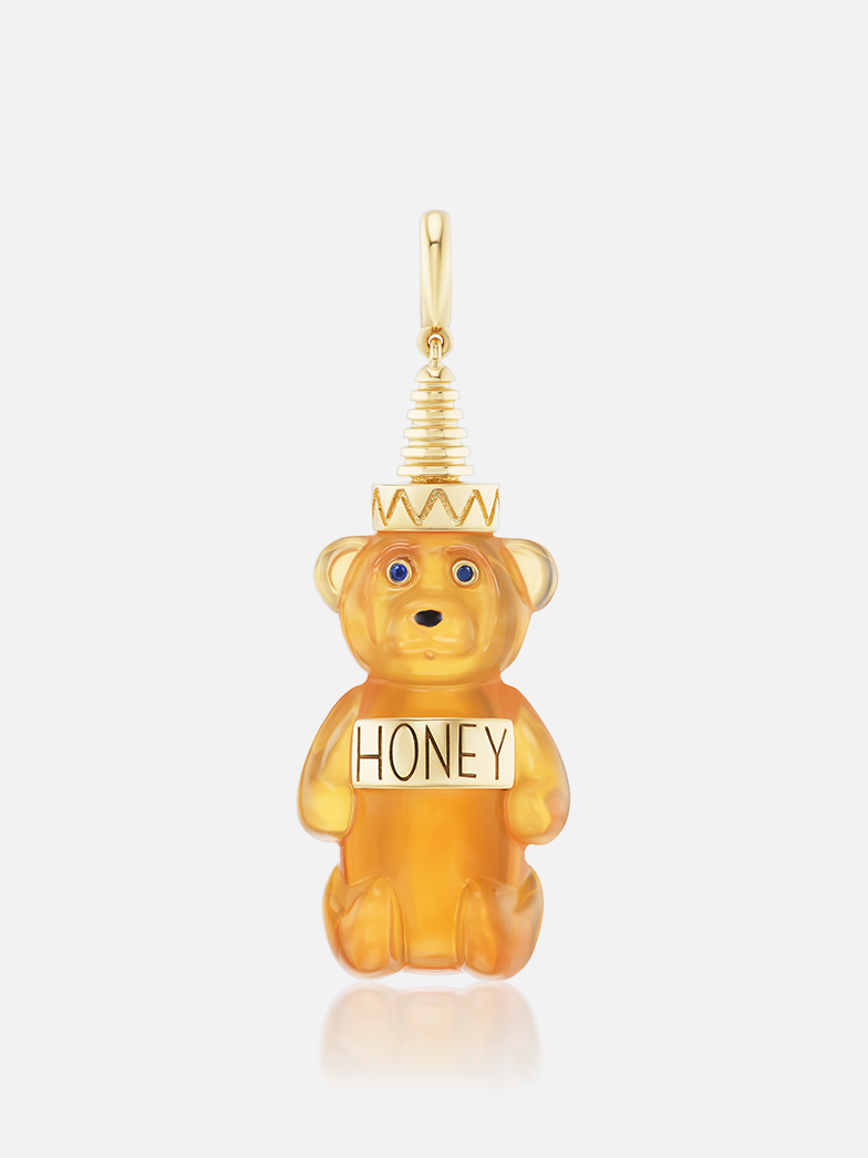 Bei unserem Honigbär-Anhänger, der eines der Lieblingsdinge der Designerin Lauren Harwell Godfrey feiert, kommt es auf die Details an. Vom gravierten Goldhut über die winzigen blauen Saphiraugen bis hin zum handgeschnitzten Feueropal – alles zu Ehren ihrer neuesten Kollektion, We Are The Seeds. Kann an jede Signatur-Foundation-Kette angehängt werden.