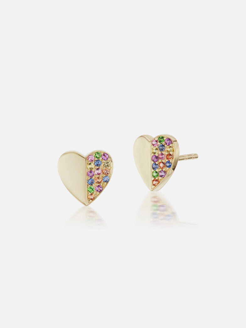 Die Herz-Ohrstecker bestehen aus einer glatten Seite aus 18-karätigem Gold und einer mit Edelsteinen besetzten Seite und bieten eine dreidimensionale Sicht auf die Liebe.