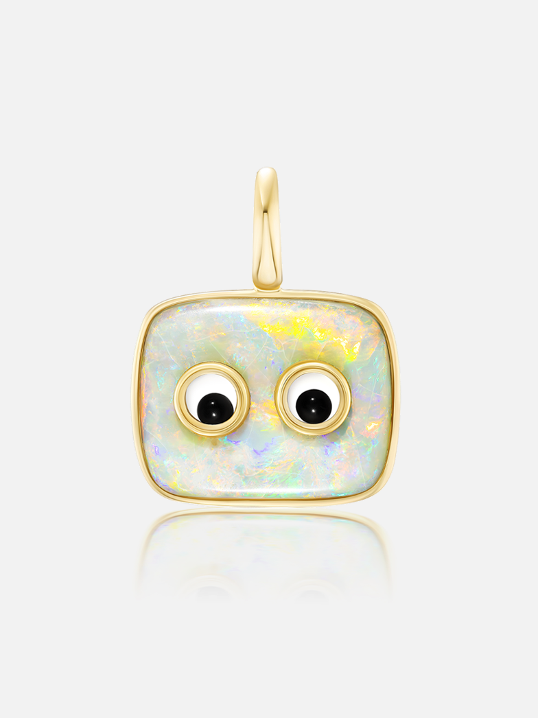Introducing Gus, a joyful opal pendant charm that embodies the playful spirit of Harwell Godfrey’s Lil’ Buddies. Set in 18k yellow gold, this one-of-a-kind treasure features a luminous 17.81ct opal accented by whimsical googly-eyes made of crystal and onyx. Gus balances nostalgia with artistry, creating a collectible fine jewelry piece designed to spark joy.