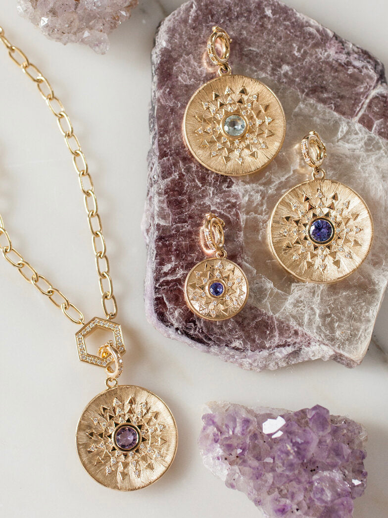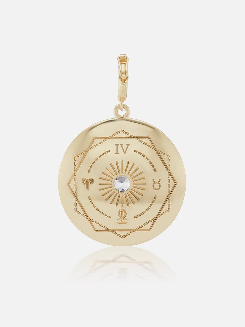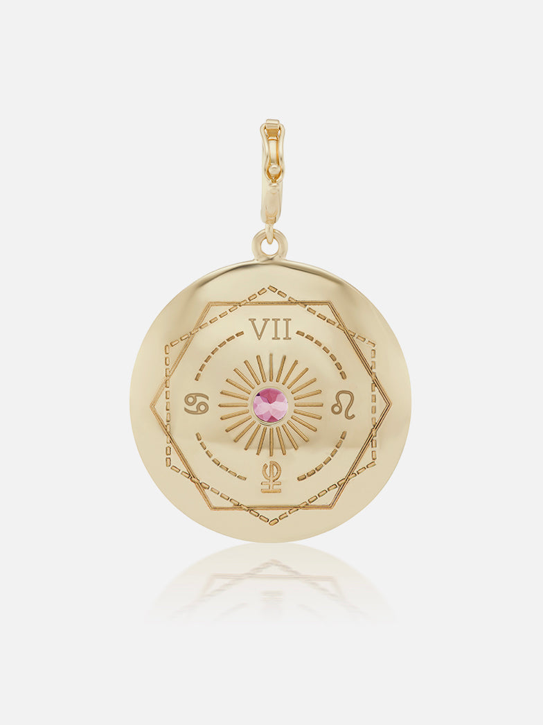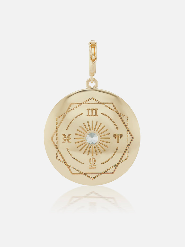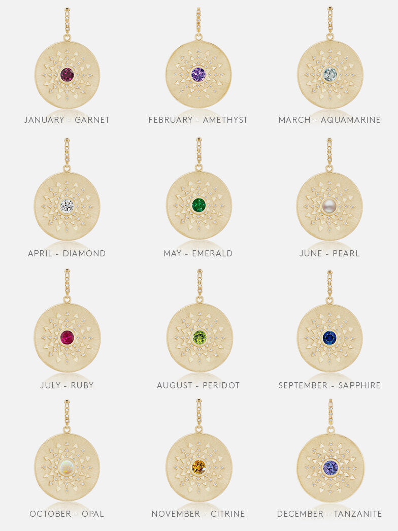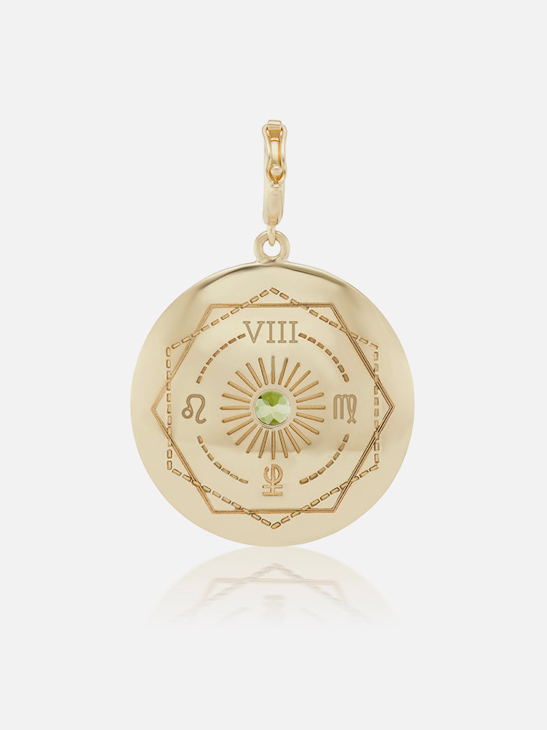 Diese reichhaltigen Scheiben aus 18-karätigem Gold sind eine unverzichtbare Ergänzung zu Ihrem HG Moon-Anhänger (ja, er lässt sich mühelos zusammenstecken!) oder ein atemberaubendes Einzelstück. Sie sind mit den charakteristischen HG-Dreiecken verziert, die strahlenförmig von einem schillernden Mittelstein ausgehen. Erhältlich in zwei Größen – Major und Mini – werden unsere neuen Lieblings-Talismane in jedem Geburtsstein in Kombination mit Pavé-Diamantstrahlen angeboten. Wie bei den meisten HG-Stücken können Sie jedes Medaillon umdrehen, um einen zusätzlichen Bonus zu erhalten: komplizierte Gravuren, die dem Mittelstein der Sonne entsprechen. Ein abnehmbarer Verstärker ermöglicht es Ihnen, ihn jederzeit an- und abzunehmen, wenn Sie etwas mehr Licht in Ihrem Leben benötigen.