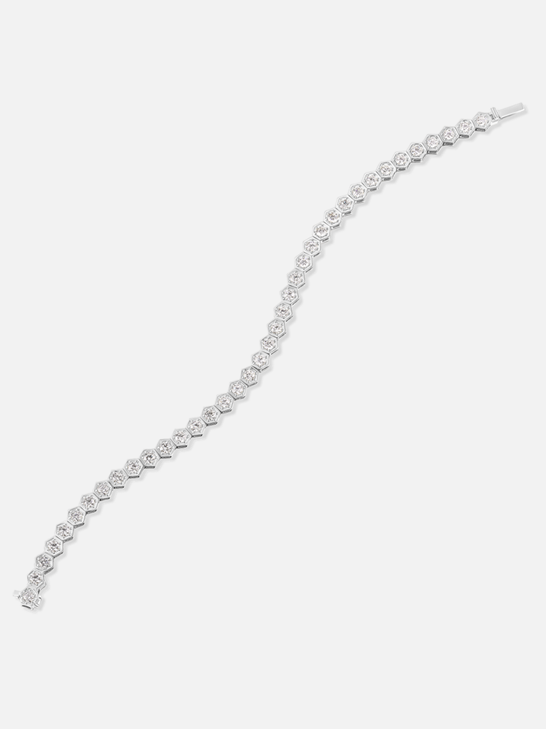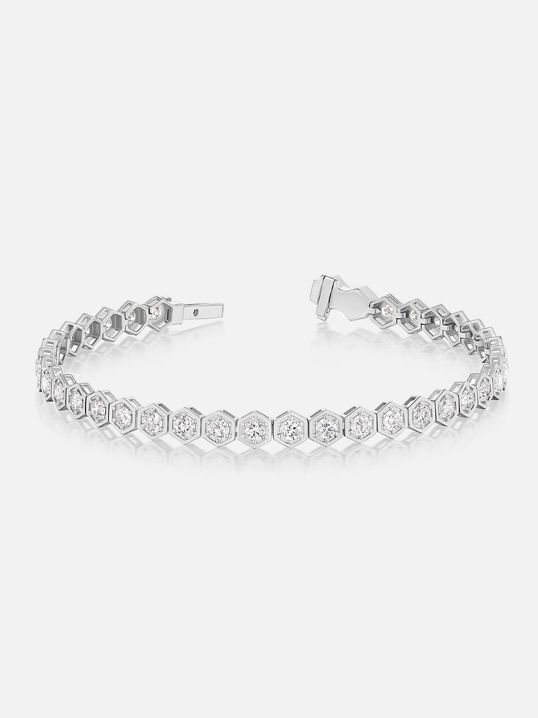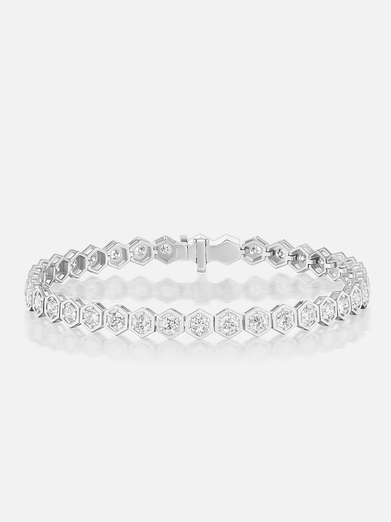 7" Länge. Tennisarmband aus Platin und 2,8 mm runden Diamanten. Unser charakteristisches Tennisarmband – eine atemberaubende Reihe sechseckiger, gefasster Steine – ist mit schillernden Diamanten besetzt.
