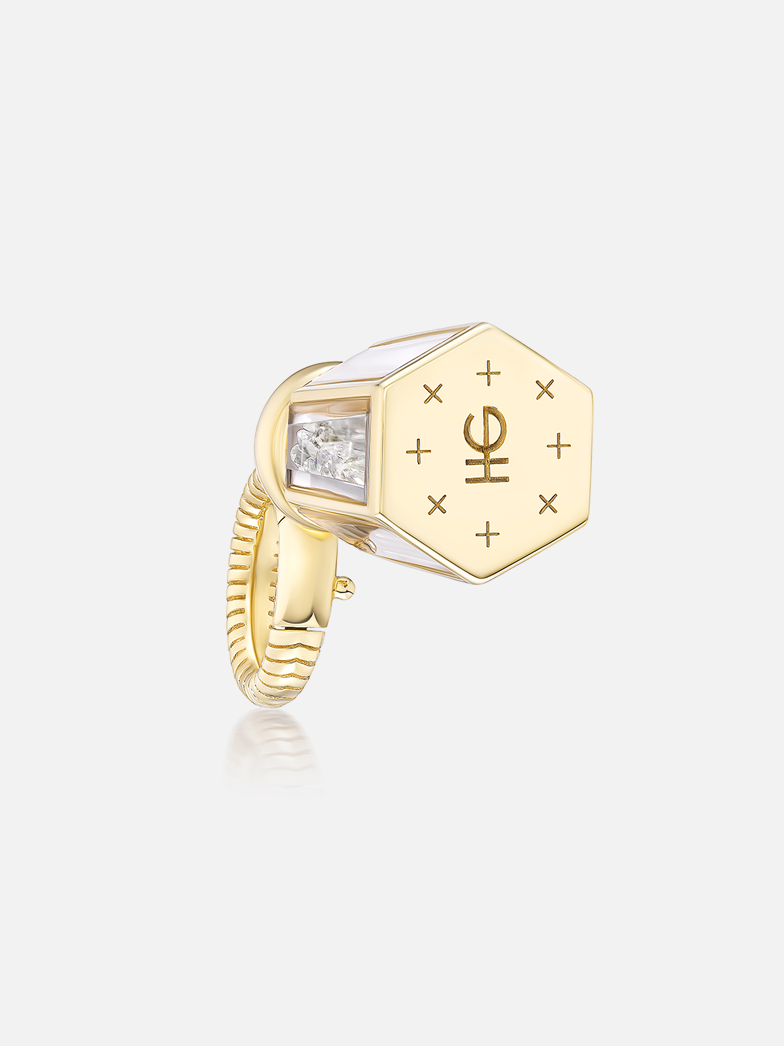 Supernova is a celebration of the magic in the universe. A collection of supernatural and cosmic motifs, including stars, unicorn horns, lucky salt shakers (filled with sparkling gems), a re-envisioned protective evil eye and a very special bracelet that reads as a timepiece forever stuck at 11:11. Containing talismans that invoke kismet and good vibes, Supernova summons you to close your eyes and make a wish.