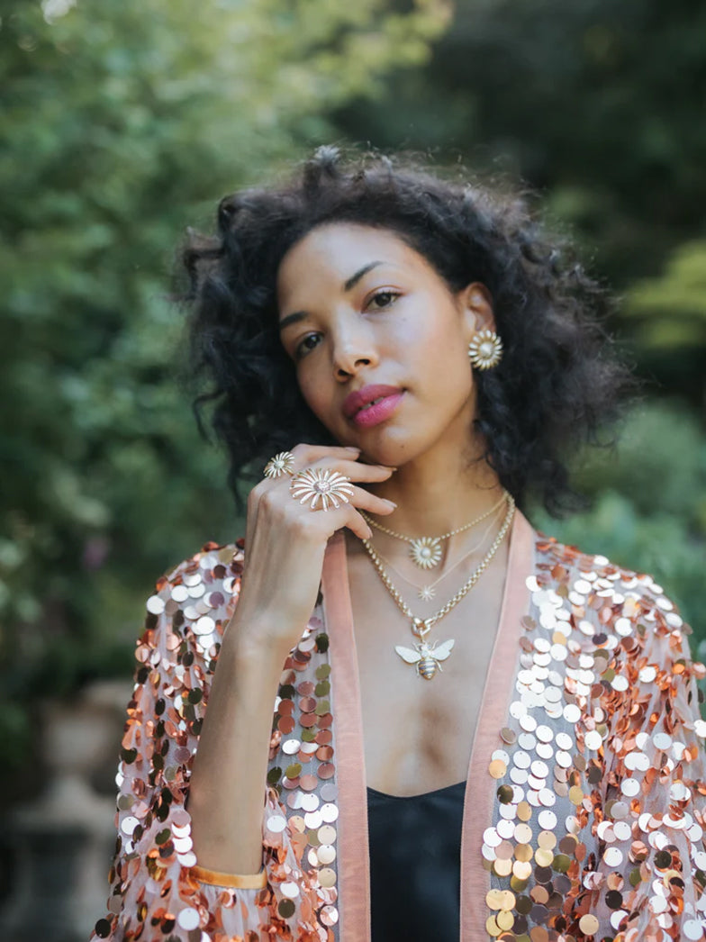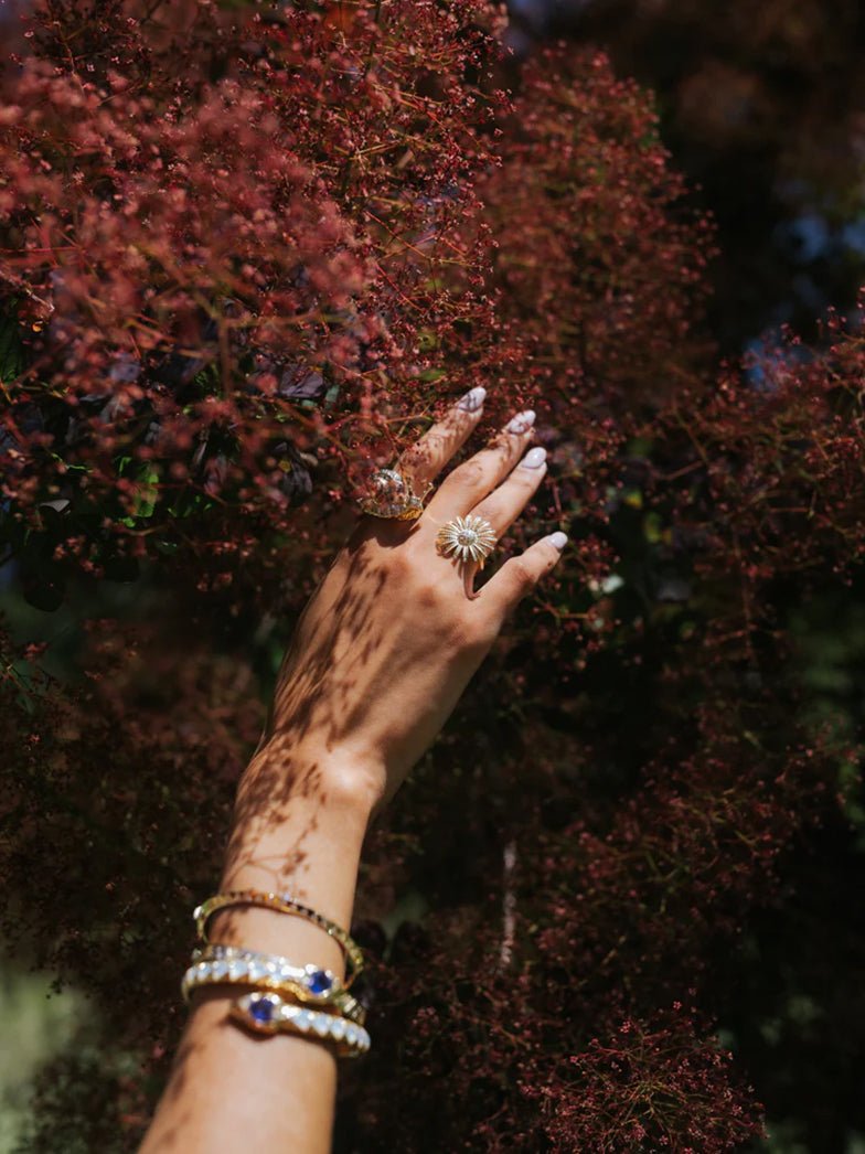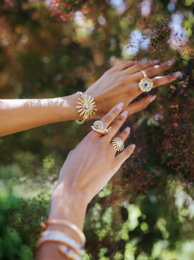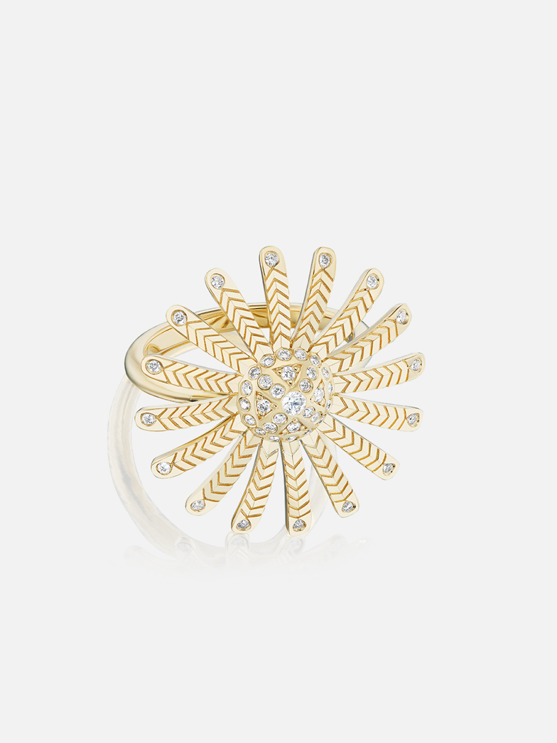 Mini-Sonnenblumenring aus 18 Karat Gelbgold mit Diamanten.
