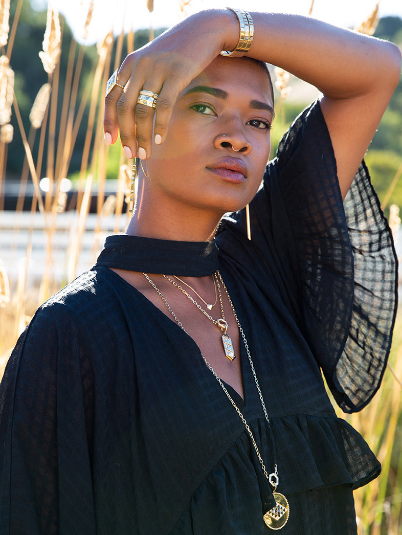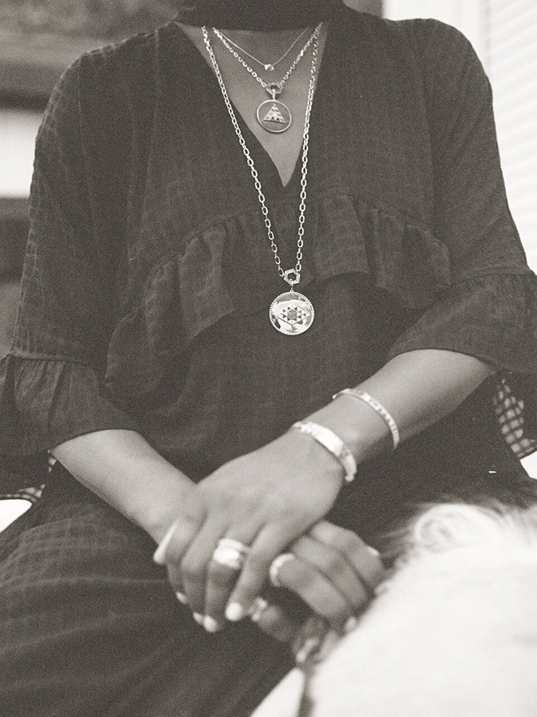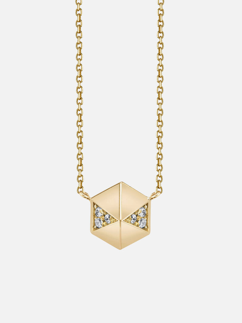Sechs Dreiecke verbinden sich an einem Punkt und ergeben unsere Pyramid Stud-Halskette, eine alltägliche Ergänzung zu Ihrem Halsschmuck.