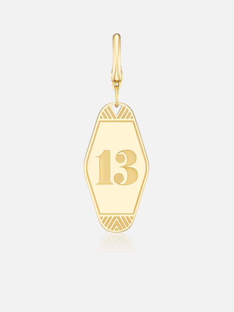 Made to order in 8-10 weeks. 18k yellow gold number 13 keychain charm pendant.