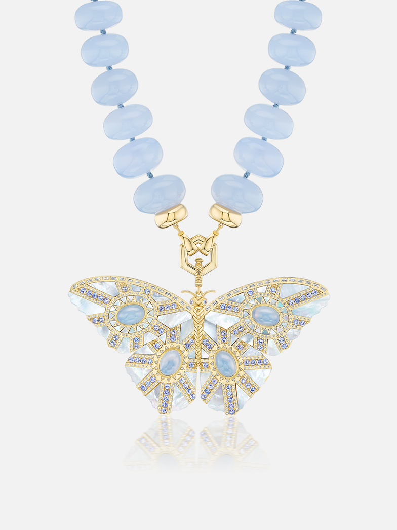 Uncommon Gems: 18" XL chalcedony stone bead foundation necklace with gold bead enders and a front tennis clasp. Pendants sold separately.