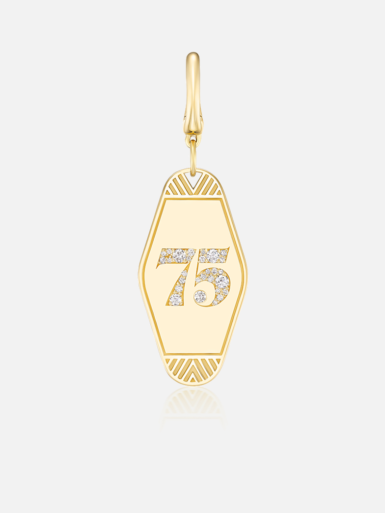 Crafted in 18k yellow gold and adorned with diamonds and signature Harwell Godfrey engraving, this capsule collection pays playful homage to the era’s risqué rituals. Expect keys, locks, and vintage-inspired hotel key tags—complete with typography pulled straight from the steamy paperback covers of the time. There's even a tassel design, inspired by the iconic room keys at the Chateau Marmont.