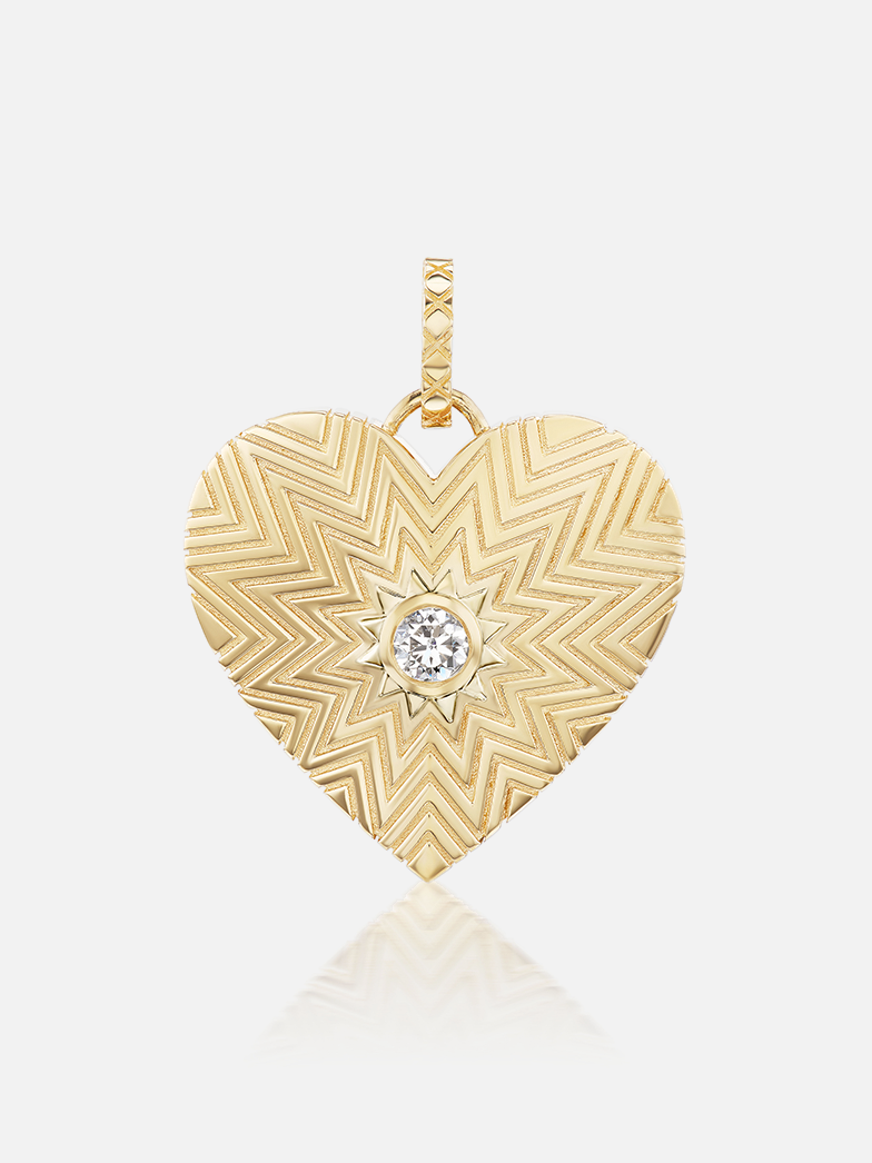 Harwell Godfrey is proud to present its newest Charity Heart in support of Everytown For Gun Safety, the largest gun violence prevention organization in America. The 18k gold pendant is hand-engraved around the diamond stone to suggest the reverberations of a gunshot.