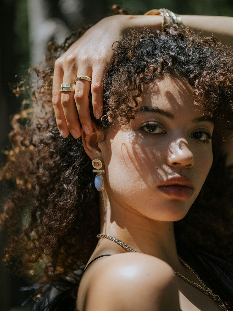 Our boldest diamond-focused band features circles, triangles and rectangles in a sleek knife-edge design. Thick and substantial, the Juju is also the perfect wedding band option for those wanting an eye-catching and unconventional way to say “I do”.