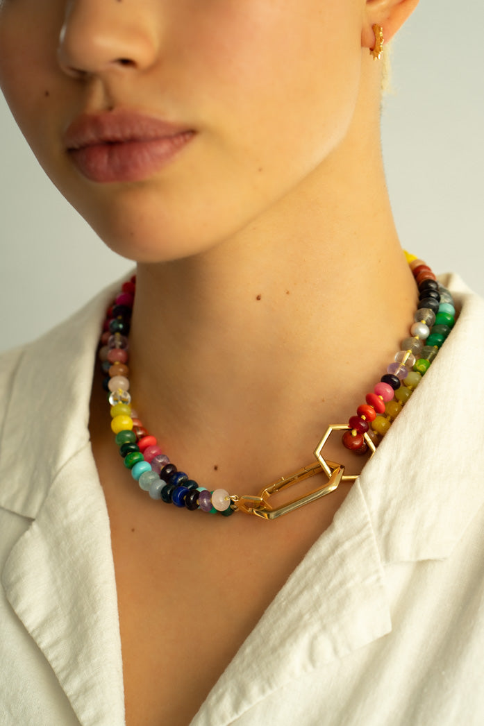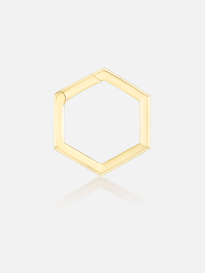 18k yellow gold major gold hexagon foundation, designed to be worn with signature open bail chain, pearl or bead necklaces.