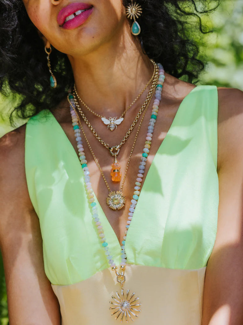 The Menagerie is a spectacular capsule of one-of-a-kind, limited edition and highly detailed animal jewels. Each divine creature — whether traveling by air, earth or sea — was specifically chosen by designer Lauren Harwell Godfrey for its unique characteristics. Emblazoned with the brand’s signature more-is-more pattern play and geometric inlay, each pendant, bracelet, brooch or ring in The Menagerie is handcrafted in 18k gold with a selection of specially chosen colored gemstones and diamonds.
