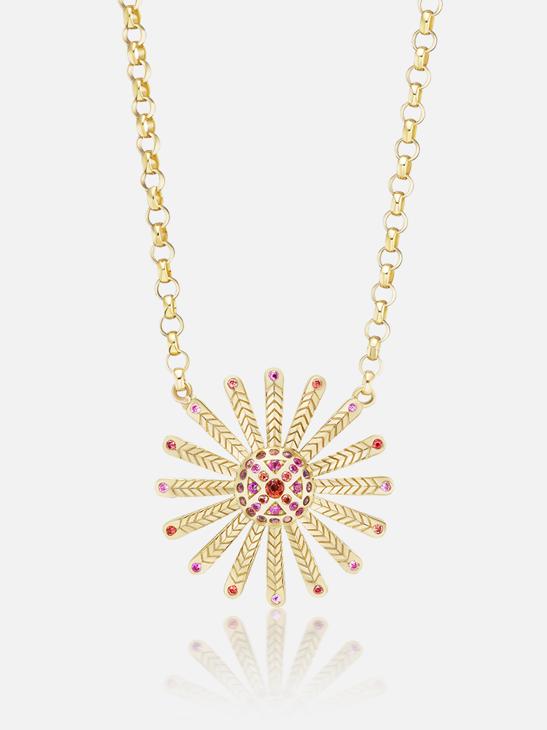 16-18" Mini Sunflower Pendant Necklace, Pink