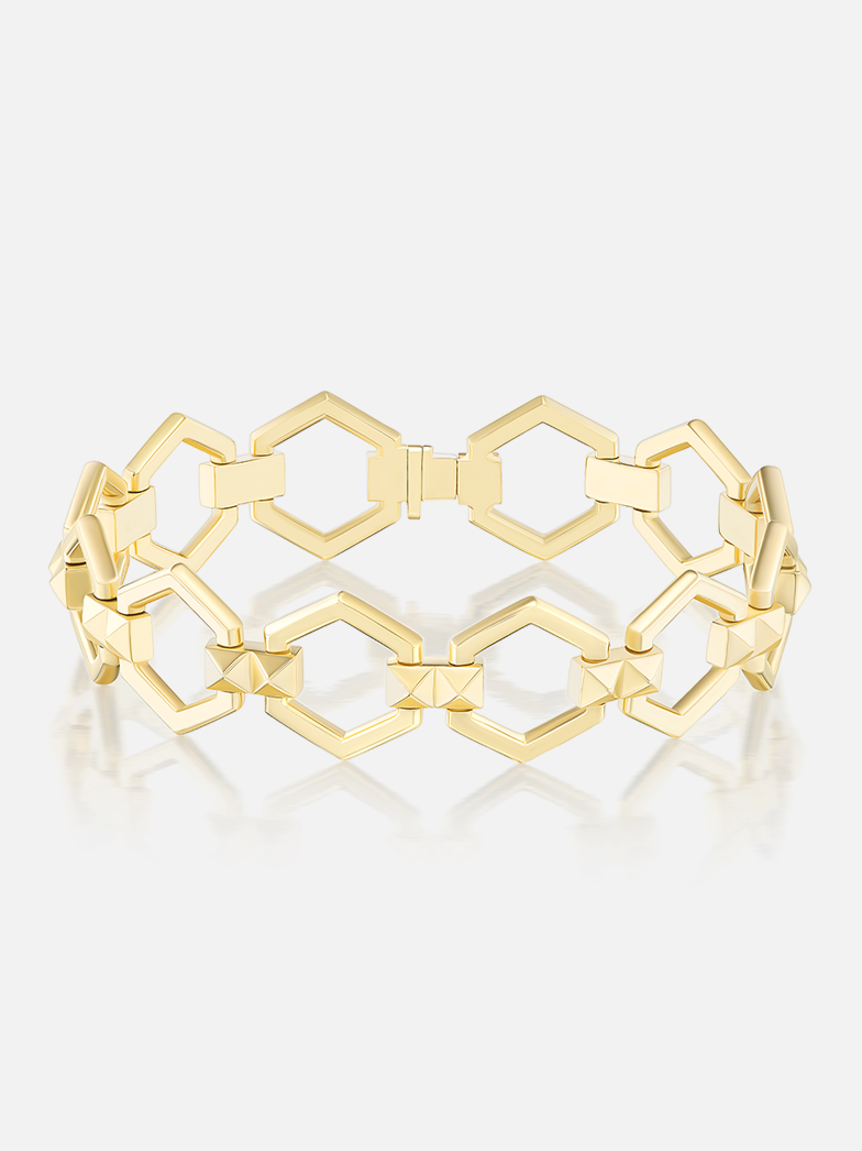 18k yellow gold pyramid stud foundation charm bracelet. Charms sold separately.