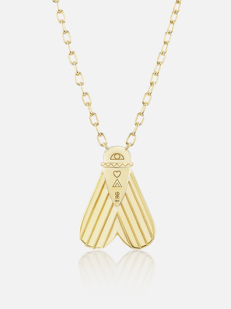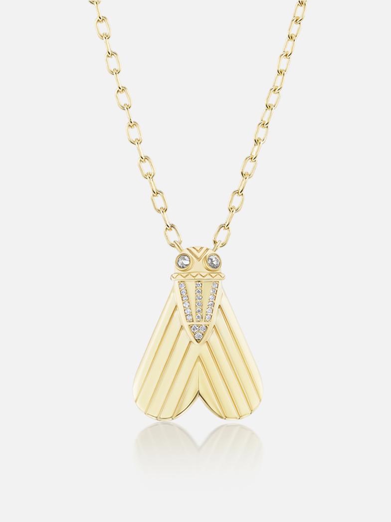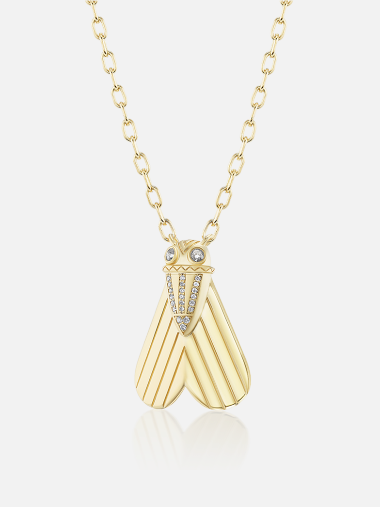 18k yellow gold, gray sapphire and diamonds in this fly pendant necklace.