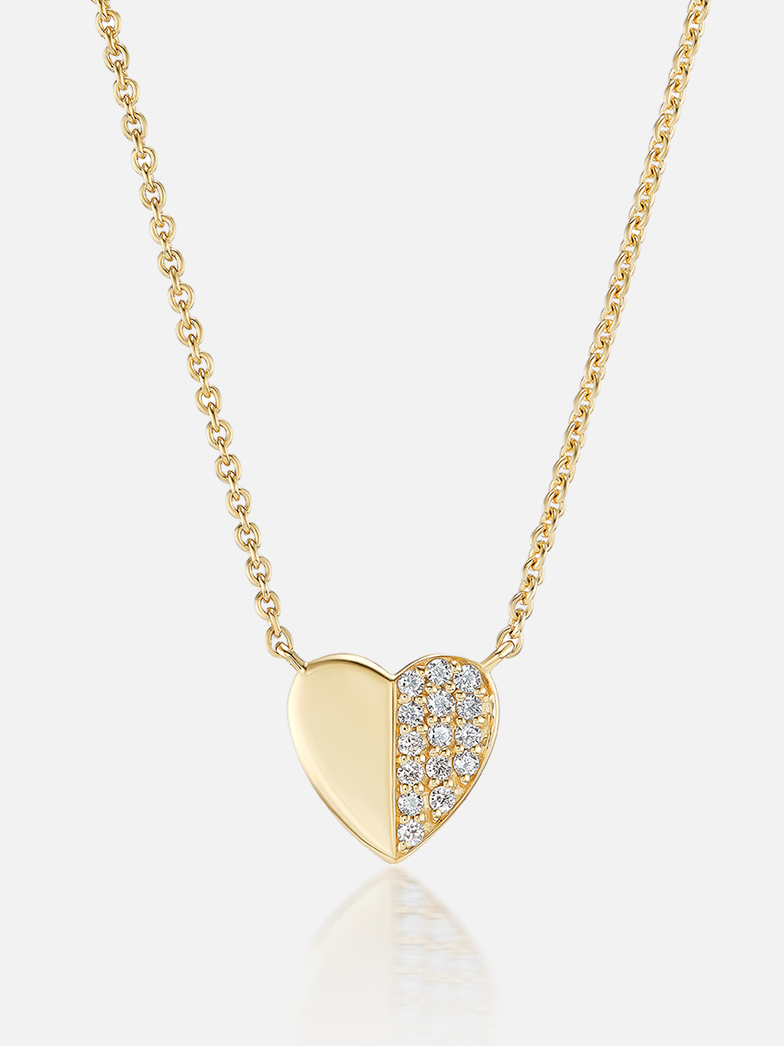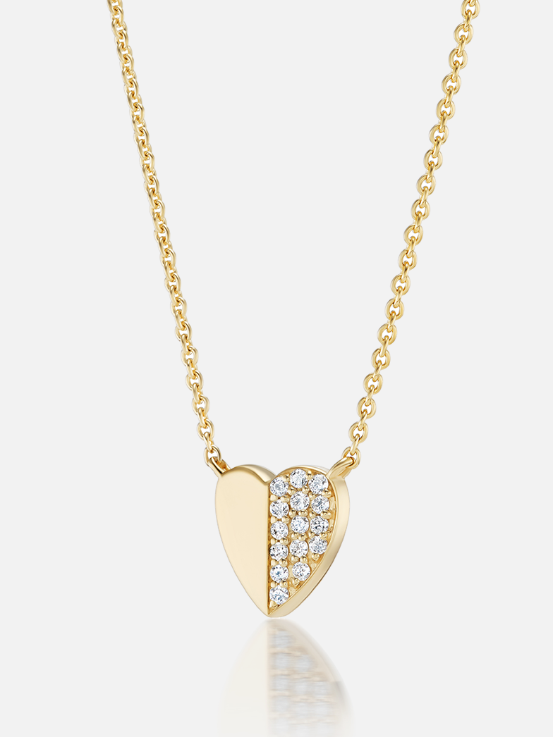 Crafted from a smooth 18k gold side and a side dotted with gems, the Heart pendant necklace offers a three-dimensional take on love.