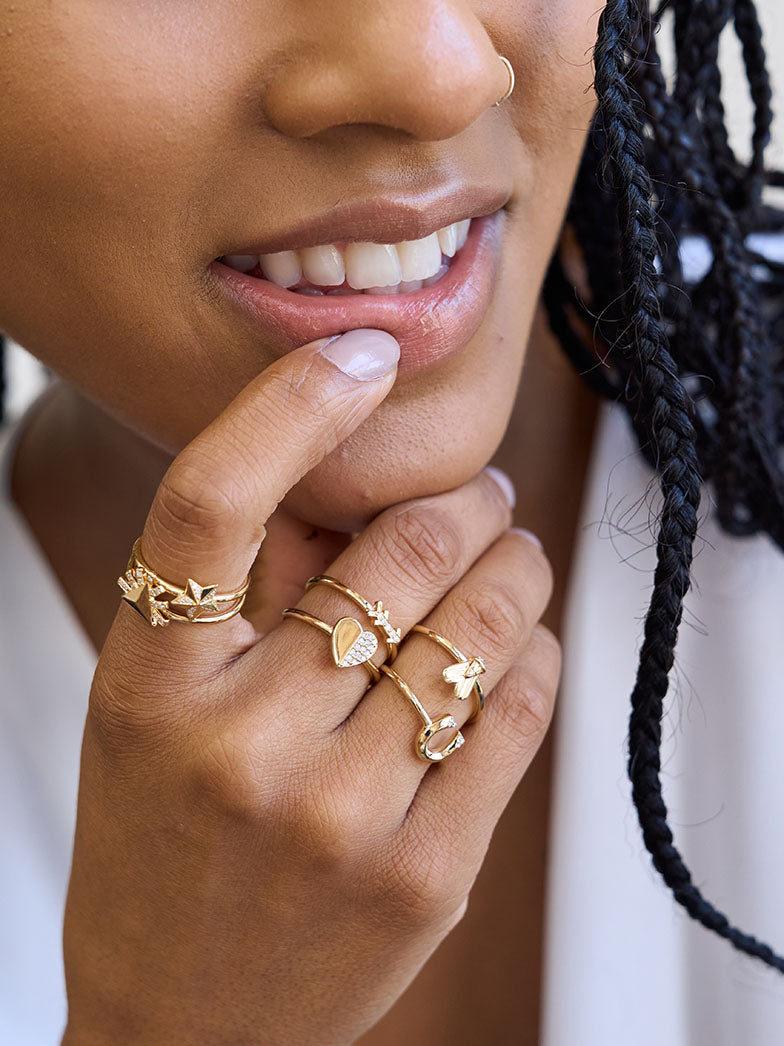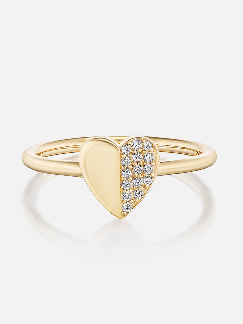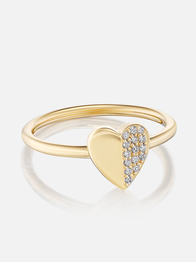 Crafted from a smooth 18k gold side and a side dotted with gems, the Heart stacking ring offers a three-dimensional take on love.