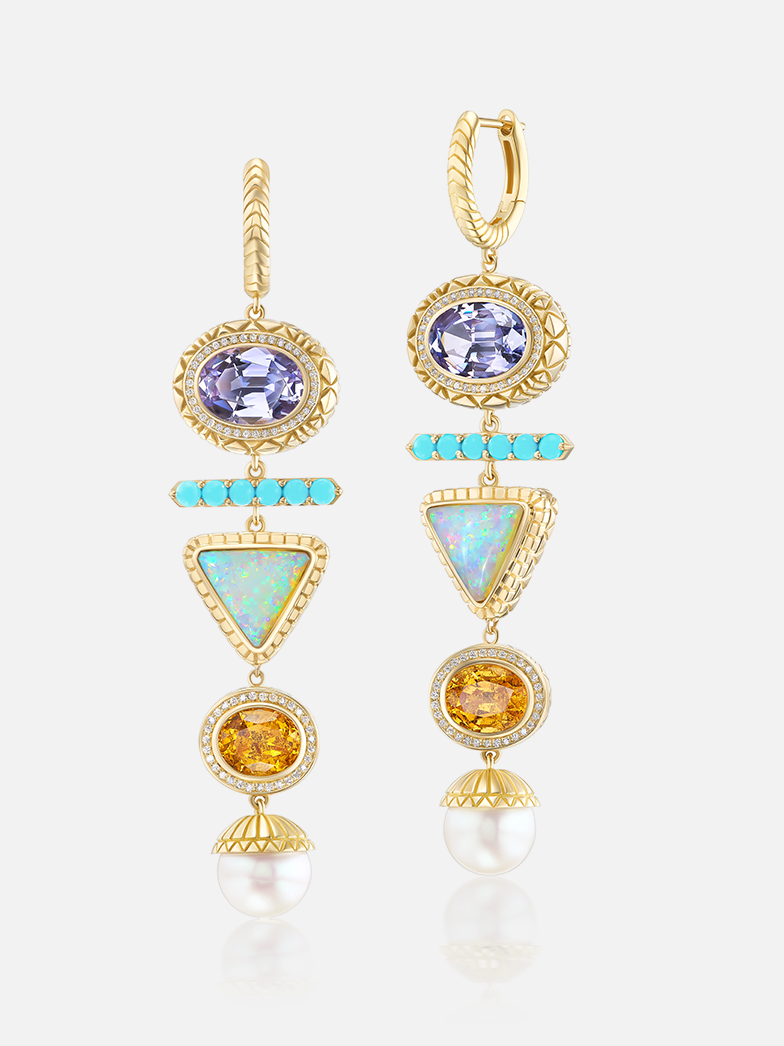 Totem Drop Huggie Earrings: Tanzanite, Opal, Pearl, Turquoise
