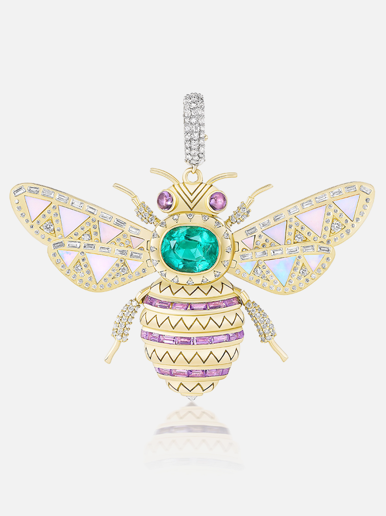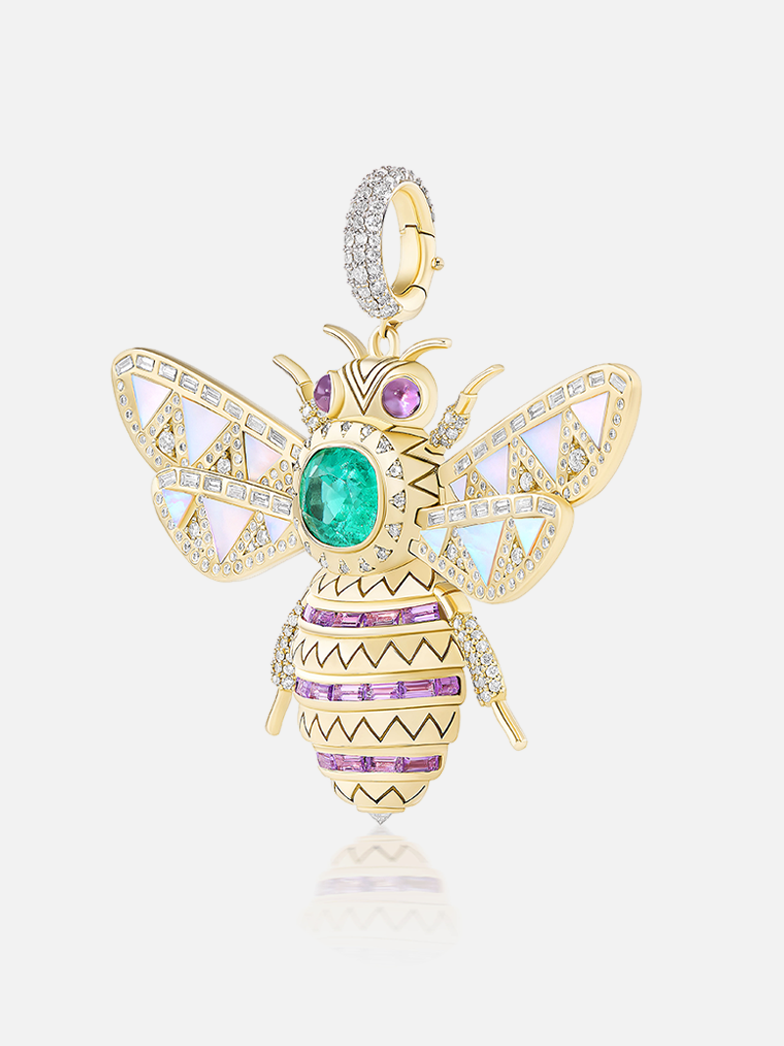 18k YGEmerald 2.68ctAmethyst 1.89ctDiamond 1.04ctGold 33.18g